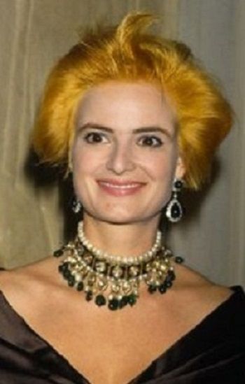 avec des boucles d'oreilles ayant appartenu à la grande duchesse Wladimir, Gloria porte un collier indien: le prince Johannes, fasciné par l'Inde et son ancienne culture, avait offert ce "collier nuptial" tour de cou traditionnel - légèrement modifié au niveau du fermoir par Van Cleef & Arpels - à son épouse Gloria.