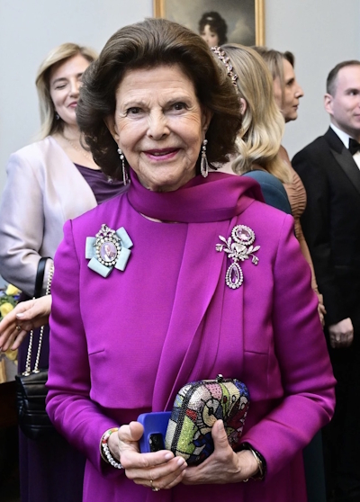 La reine Silvia de Suède porte des bijoux en topazes roses et diamants de l’ensemble offert par le tsar Paul 1er de Russie à sa fille Maria lorsqu'elle épouse le grand-duc Friedrich de Saxe-Weimar-Eisenach en 1804. Légué de mère en fille, c'est son arrière-petite-fille Victoria de Bade (future reine Victoria de Suède) qui l'introduit en Suède en 1923.