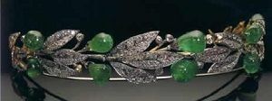 Très beau diadème,en collier j'aime moins.émeraude et diamant tout ce que j'adorel'émeraude a la réputation d'être la plus féminine des pierres;elle n'a qu'un défaut,elleest fragile.